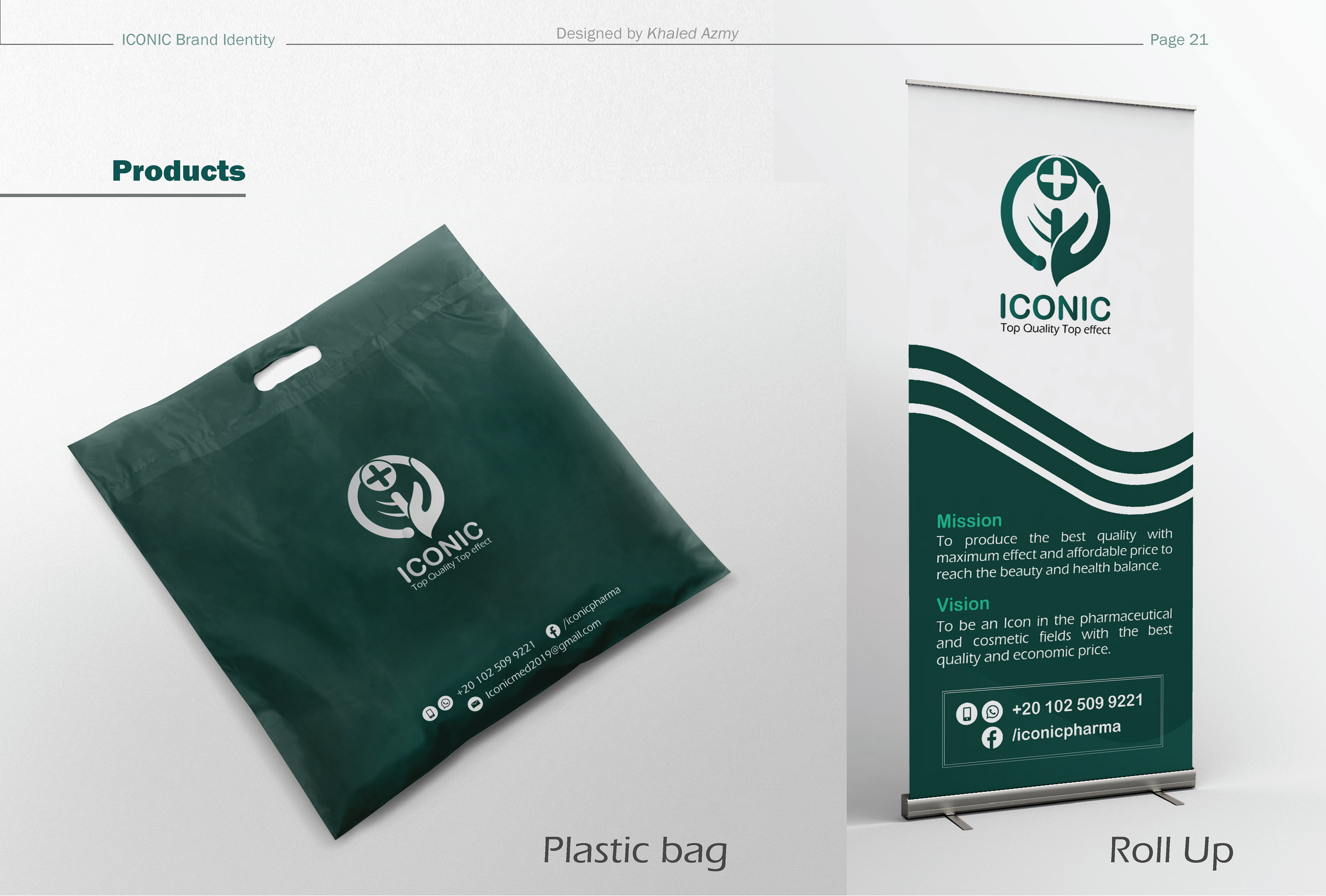 Visual identity for the ICONIC for pharmaceutical and cosmetics products. ICONIC is under-construction company by Egyptian youth whom aim to be an icon in their field with best quality and economic price. The mark is a flat merged symbols of many concep…